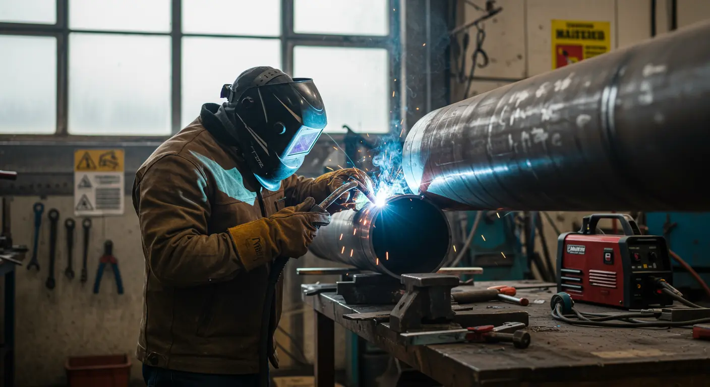 Shielded Metal Arc Welding (SAW)—commonly dubbed “stick welding”—stands as one of the most versatile and extensively utilized pipe welding techniques. This method employs a flux-coated consumable electrode rod that melts when electric current generates an arc between the rod and base material. During welding, the flux coating disintegrates, producing a protective shielding gas that safeguards the weld area from atmospheric contamination while forming a slag layer over the weld bead.